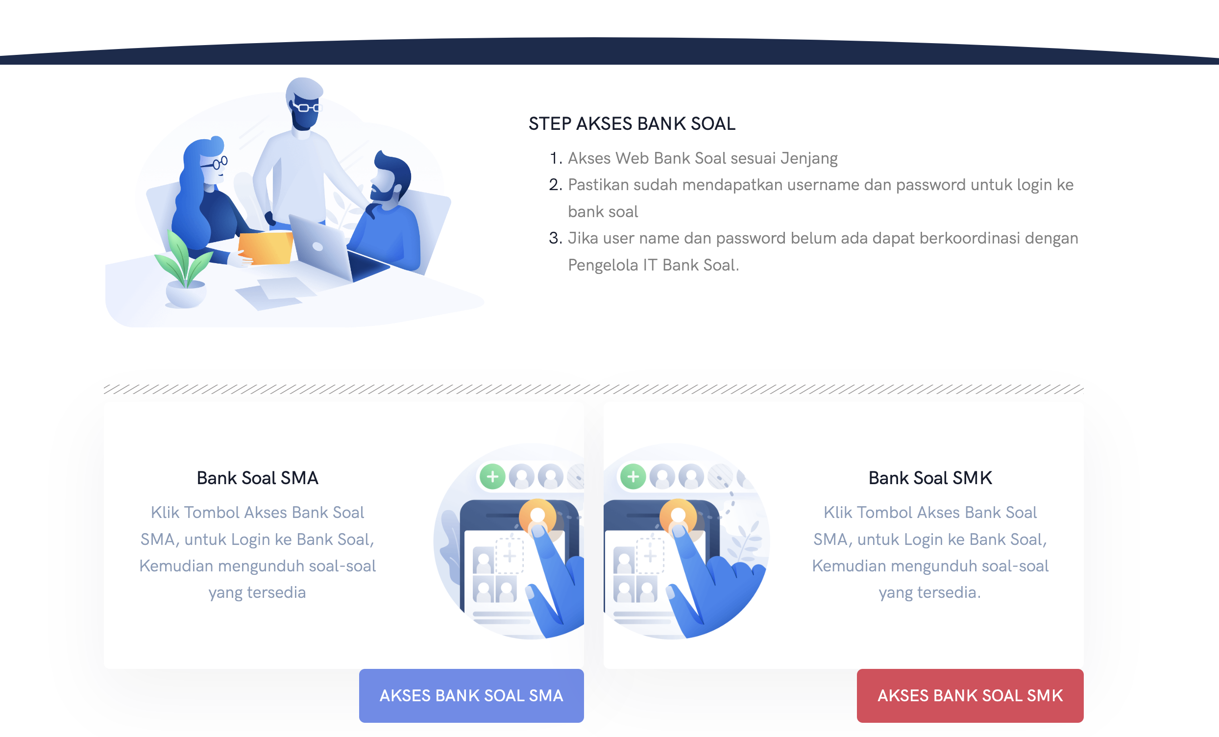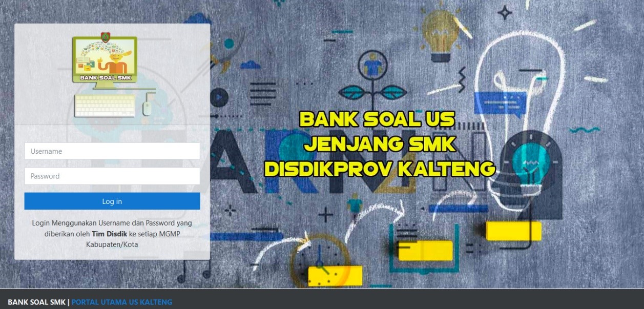 Bank soal merupakan sistem yang mengumpulkan jenis soal-soal yang dapat di pergunakan pada pelaksanaan Ujian Akhir Sekolah (UAS). Fasilitasi Bank Soal Portal ini merupakan portal informasi terkait dengan soal-soal yang di pergunakan untuk Ujian Akhir Sekolah Pada tingkat Kelas XII (Dua Belas). Semua konten soal di dalam Bank Soal, bentuk dan muatannya sudah di Validasi oleh perwakilan setiap MGMP pada tahun 2020.