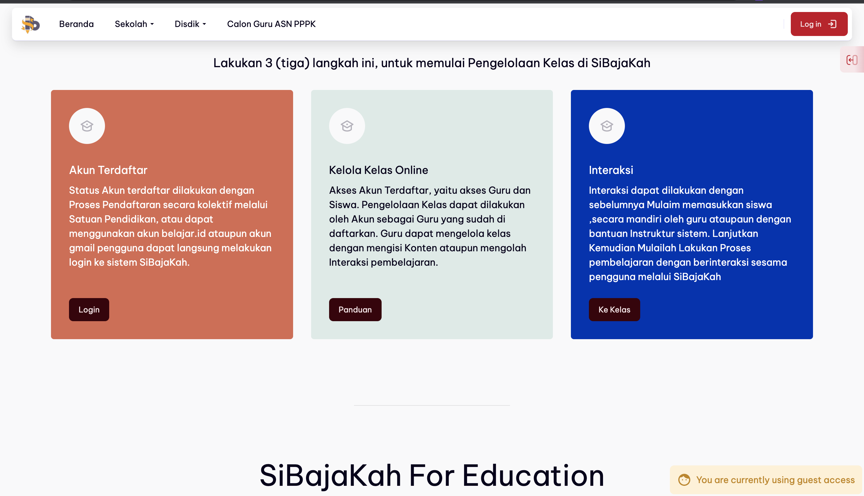 Sistem Elearning Sibajakah adalah solusi pembelajaran online unggulan yang menawarkan cara yang interaktif, menarik, dan hemat biaya untuk memberikan pendidikan online yang berkualitas. Desain E-Learning yang intuitif memastikan pembuatan kursus yang disederhanakan dan pengiriman kursus yang disederhanakan untuk guru dan siswa. Dengan modul yang mudah digunakan, ini memberikan kemampuan penyesuaian yang luas yang memungkinkan institusi menyesuaikan kursus mereka sesuai dengan kebutuhan pendidikan mereka.